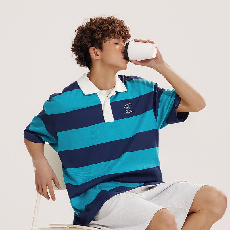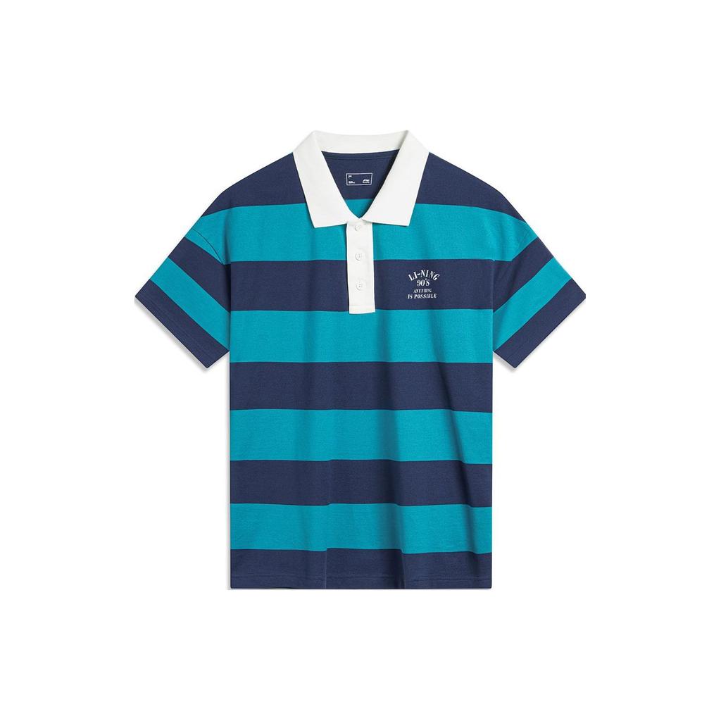 Li-Ning Выходные молодежные повседневные удобные полосатые рубашки поло унисекс рубашки поло рифово-голубой APLU235-3