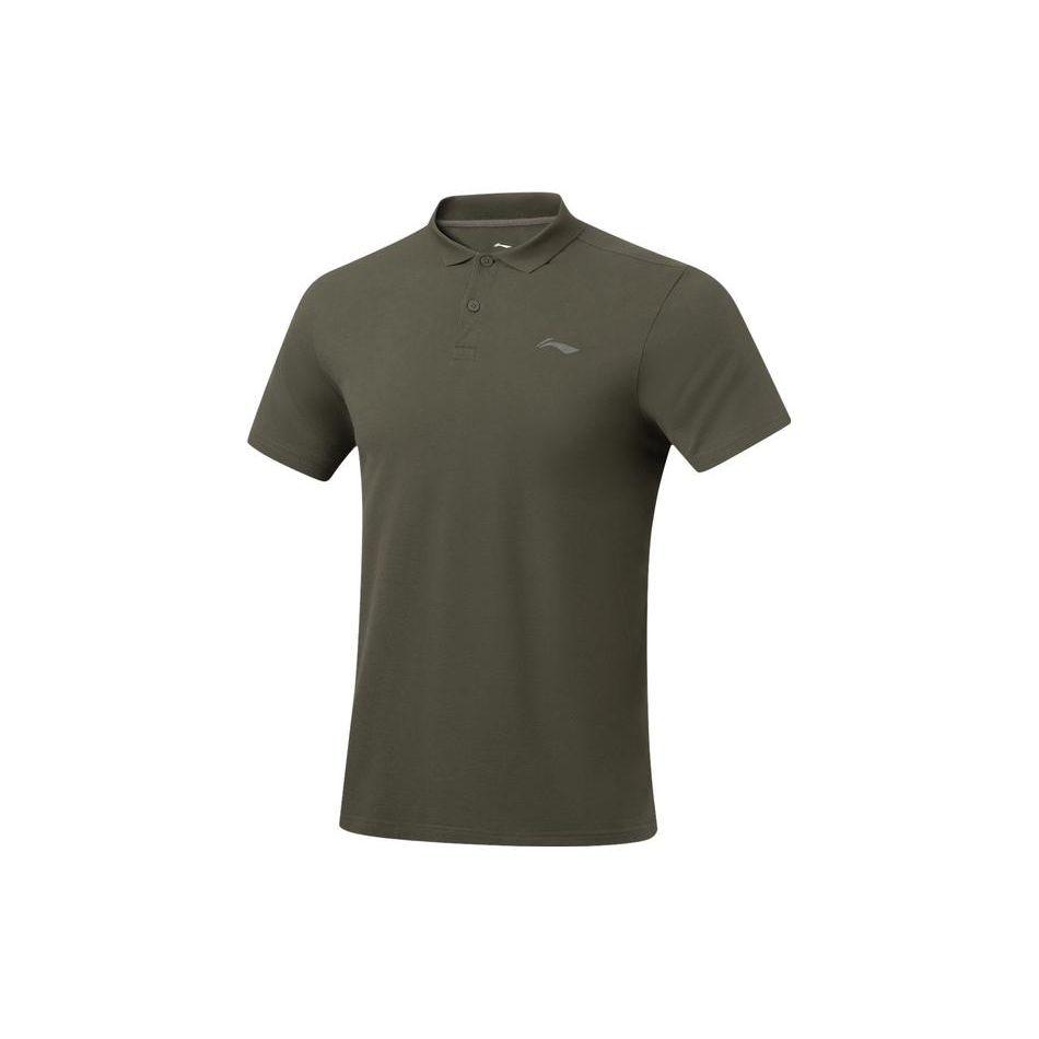 Li Ning Fitness Series Простая однотонная повседневная спортивная рубашка-поло для мужчин, цвет милитари-зеленый APLU253-4
