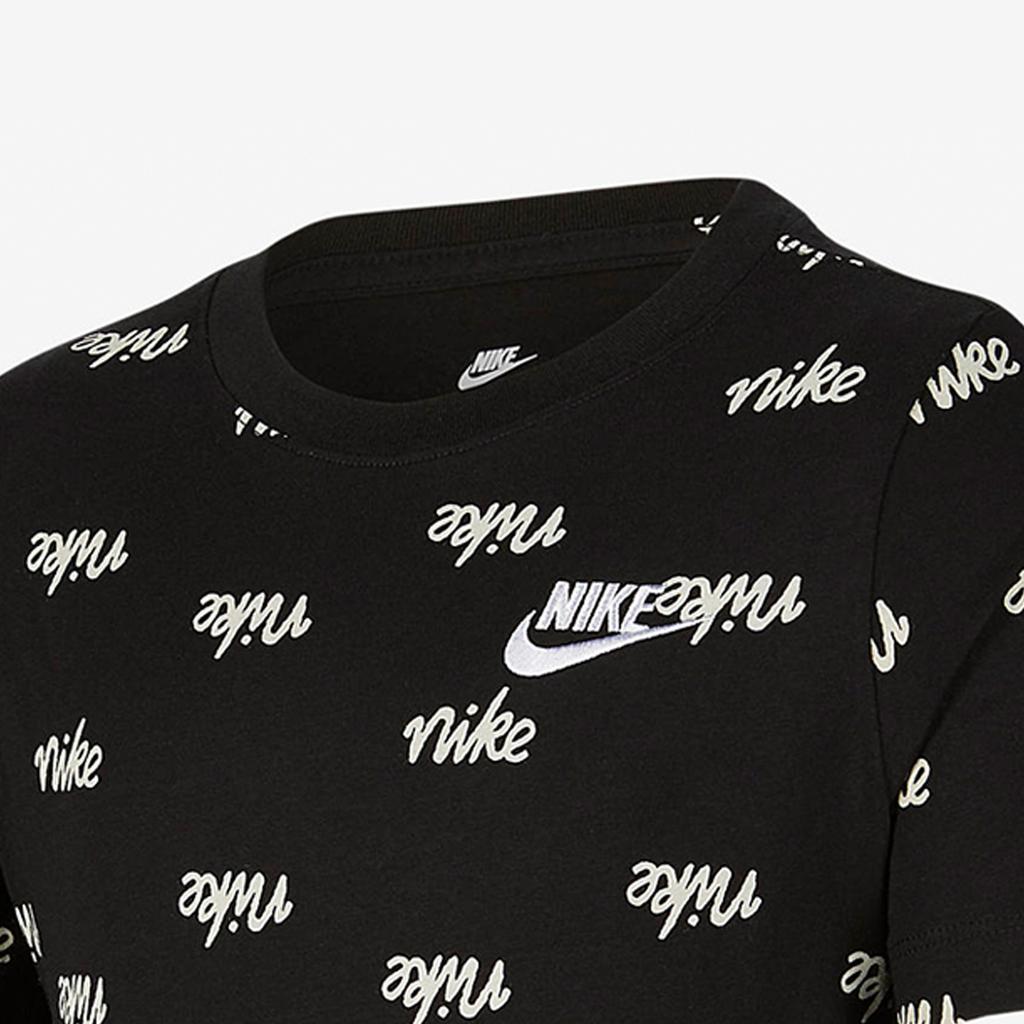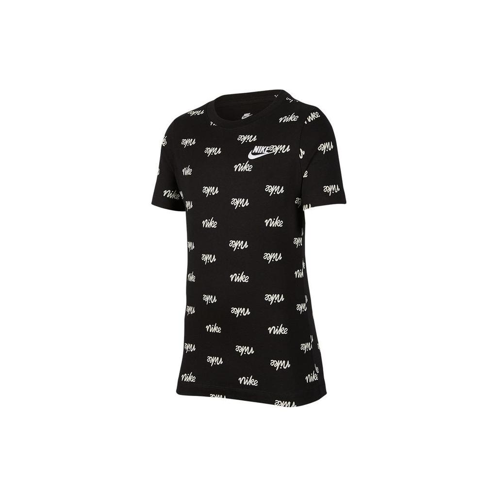 Nike Футболка спортивная с круглым вырезом и принтом логотипа по всей поверхности, с коротким рукавом, детская, черная DR1995-010