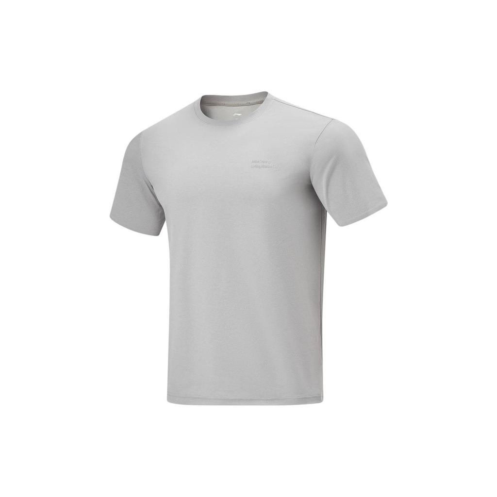 Li-Ning Футболка Cooling Tea T Quick-Dry Cool Casual Printed Letter Round Neck Sports Knit Short Sleeve T Shirt Men tops Ultimate-Gray ATSU587-5