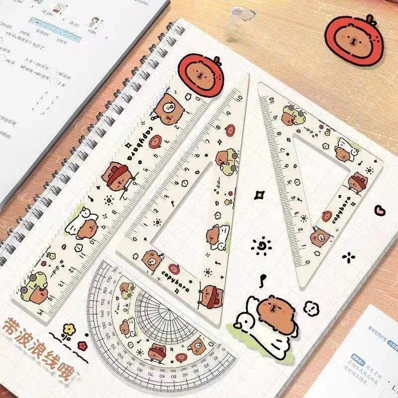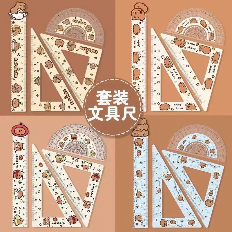 4 шт./набор Креативные акриловые линейки с капибарами Инструмент для рисования Мультяшный набор мягких линеек Офисные принадлежности Квадратные Необходимые предметы для школы