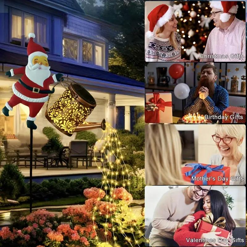 Солнечный Санта Клаус Лейка Огни Винтажный Металлический Уличный Садовый Декор Солнечный Чайник Свет для Патио Дорожки Рождественские Подарки