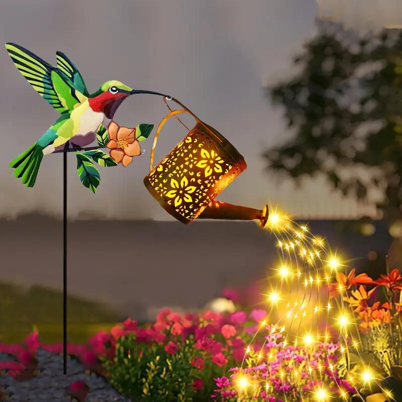 Садовый светильник в виде чайника-колибри на солнечной батарее, уличный водонепроницаемый подвесной светодиодный светильник на солнечной батарее в виде лейки для патио, дорожки, декора сада
