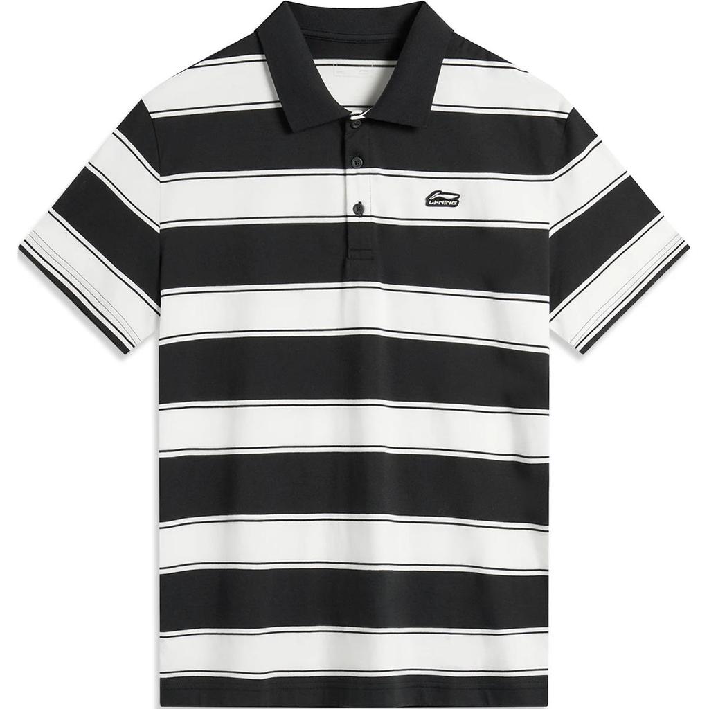 Li Ning Sports Lifestyle Series Полосатая удобная дышащая универсальная повседневная рубашка поло с коротким рукавом Мужские рубашки поло черного цвета с оттенком белого APLU083-2