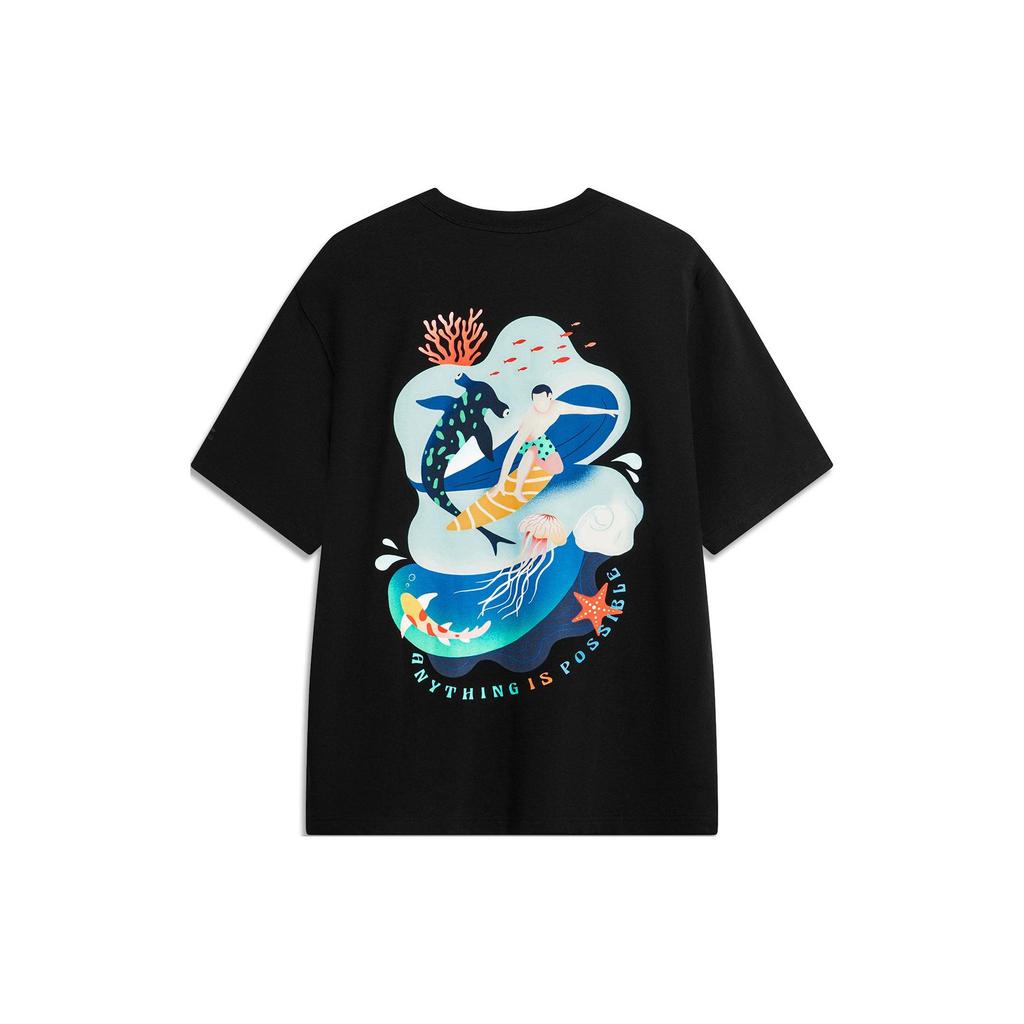 Li-Ning Удобная футболка с круглым вырезом и коротким рукавом, мужские топы, цвет черный, синий AHSU307-3