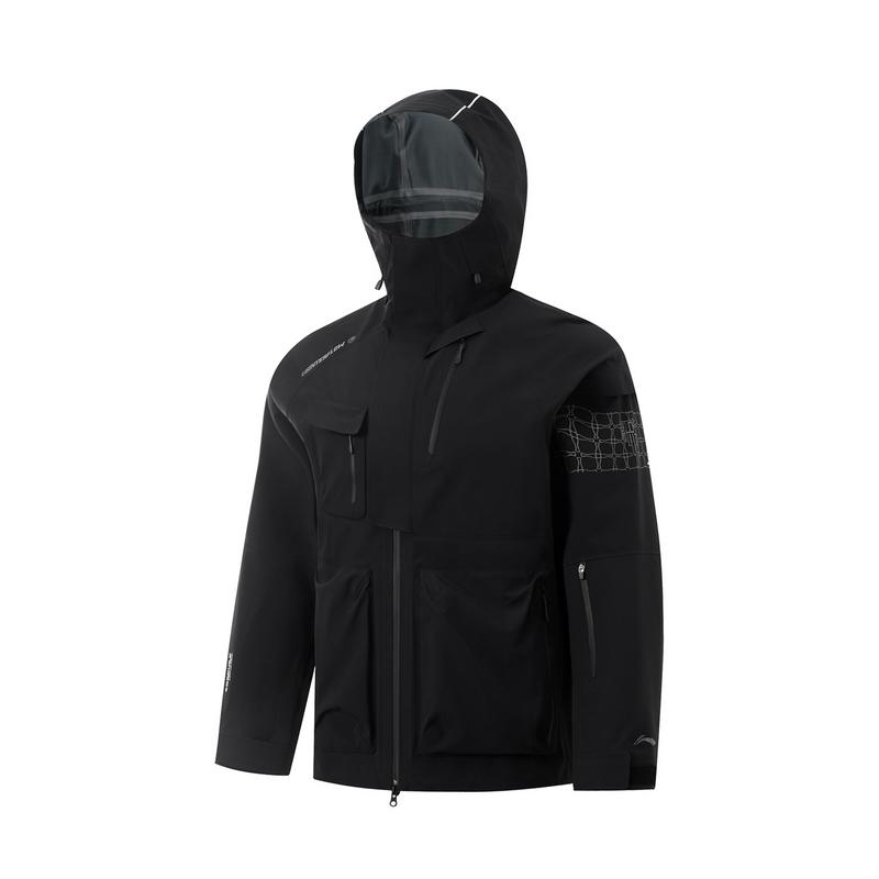 Li Ning Breath Pro Series Letter Zipper с капюшоном, удобная дышащая водонепроницаемая ветрозащитная куртка с длинным рукавом, куртка унисекс, черная AEMU045-5
