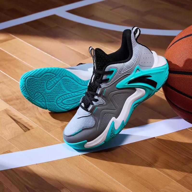 Anta Детские баскетбольные кроссовки Air Space с противоскользящим покрытием, амортизирующими, износостойкими, дышащими, с низким верхом, детские кроссовки серо-черного цвета A12431102-2