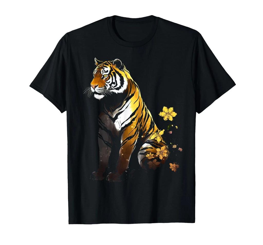 Tiger Artwork Flowers - Animal Art Tiger T-Shirt