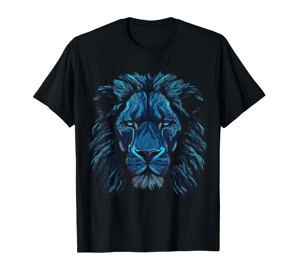Искусство Льва Голубые Глаза - Животный Мотив Зоопарк Лев Футболка