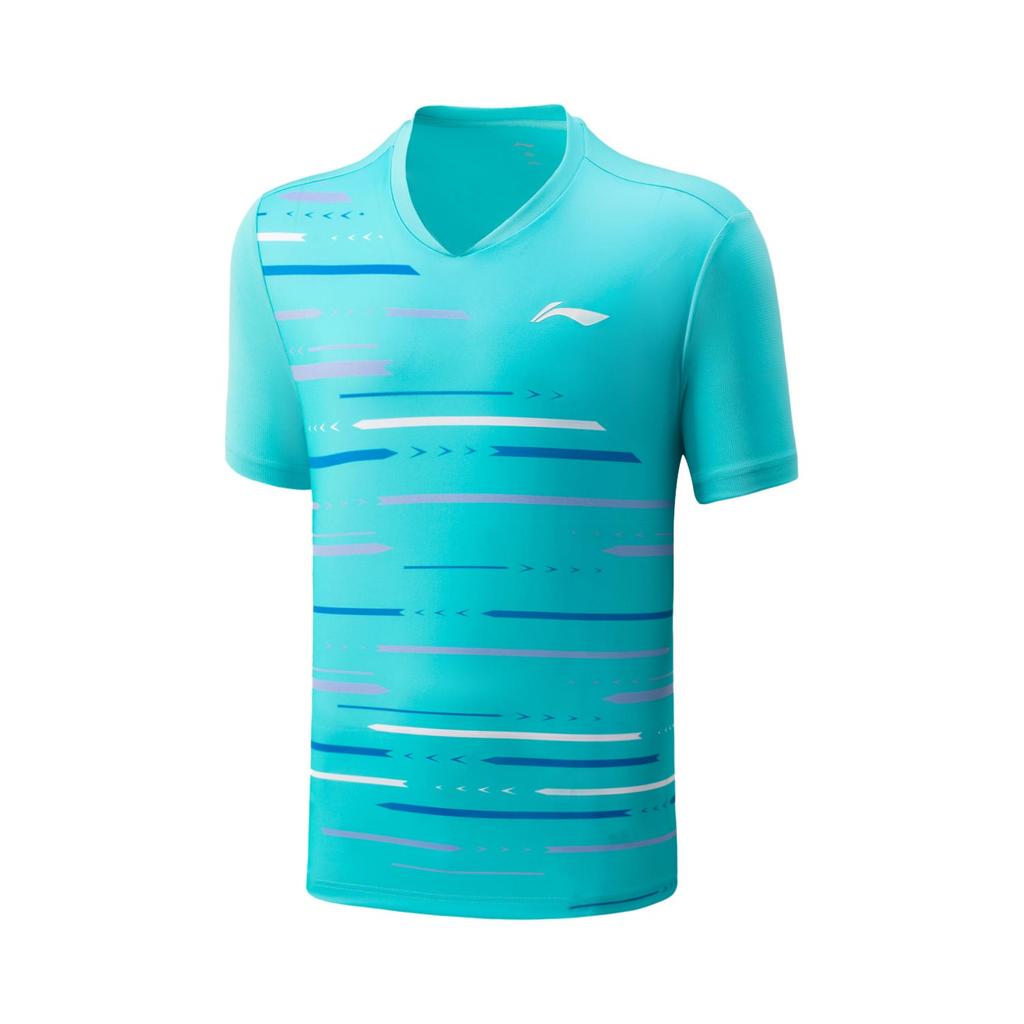 Li-Ning Футболка Club Series Striped V-Neck Competition Sports с коротким рукавом, унисекс, цвет Ocean-Blue AAYU155-3