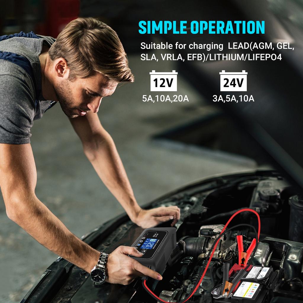 Зарядное устройство для автомобильного аккумулятора 12В 24В 7-ступенчатая зарядка для литиевых свинцово-кислотных Lifepo4 (США)