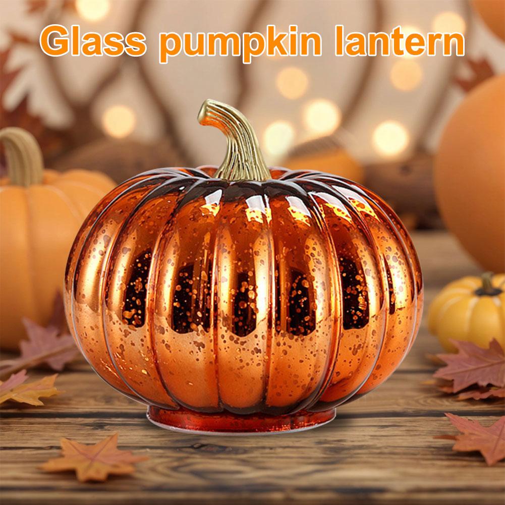 Стеклянный светильник-тыква, Хэллоуинская тыквенная лампа, Стеклянный светящийся тыквенный светильник, Хэллоуинские украшения