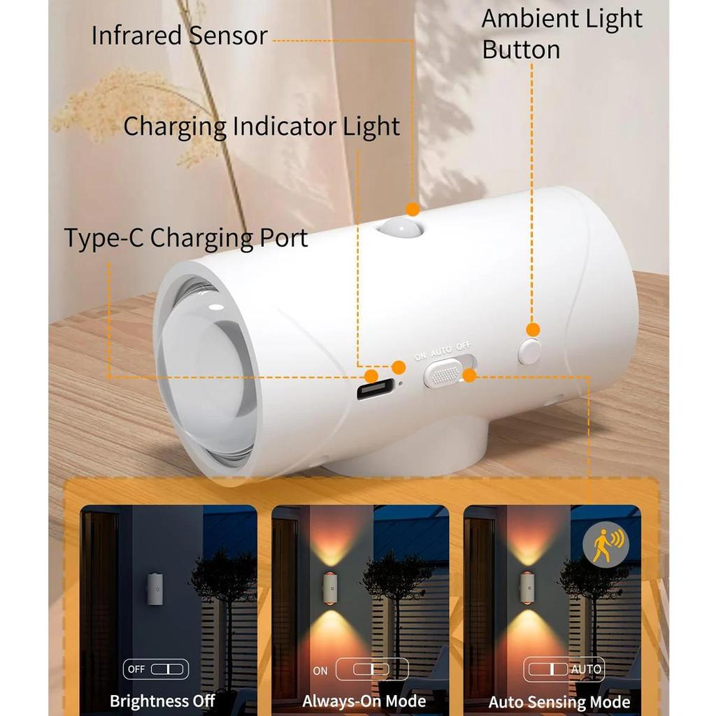 Настенный светильник с датчиком движения, градиентный окружающий ночной свет, человеческие RGB-лампы, корпус, декоративный, диммируемый, для интерьера, наружный, с датчиком, магнитный