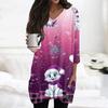 Женские топы с V-образным вырезом и рукавом 3/4, повседневные блузки средней длины, модные туники с рождественским принтом и карманами