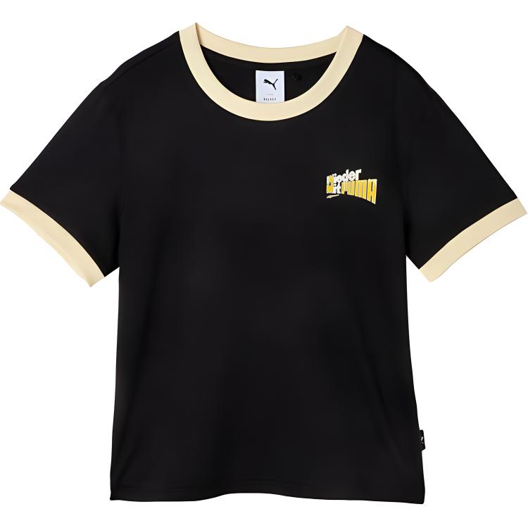 Puma Цветные блоки дышащий спортивный свитер с круглым вырезом и буквенным принтом футболка с коротким рукавом женские топы черный 628269-01