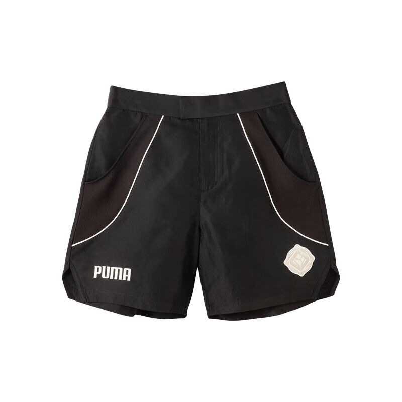 Puma Узор логотипа эластичный пояс средней длины повседневные шорты унисекс шорты черные 628249-01
