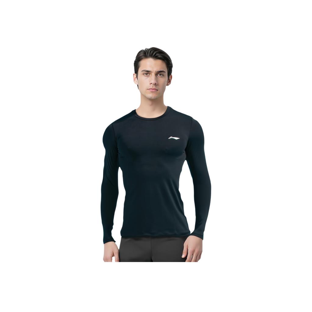 Li Ning Fitness Sports с длинным рукавом дышащая быстросохнущая тренировочная рубашка для велоспорта мужские топы черного цвета AUDSB43