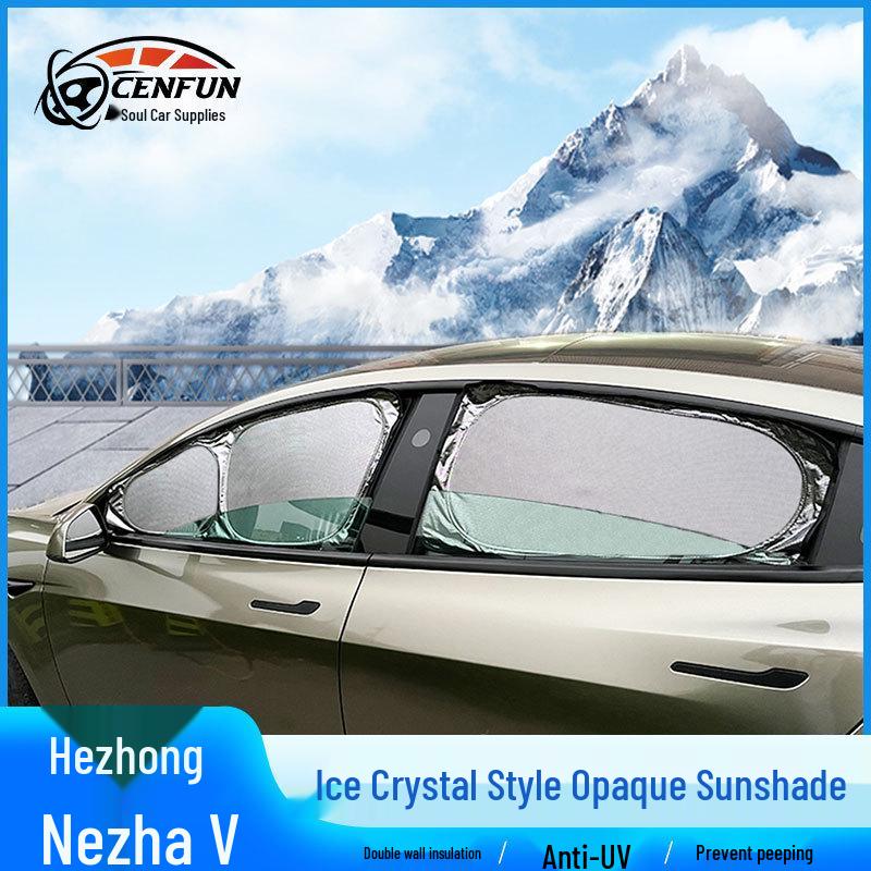 Hezhong Nezha V Car Sunshade: Ice Crystal Opaque Window Curtain for Sun Protection, Heat Insulation, and Privacy.