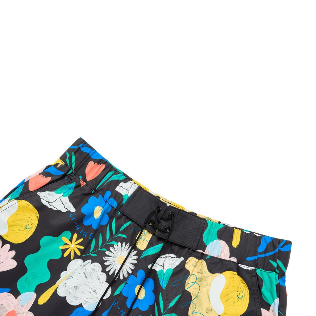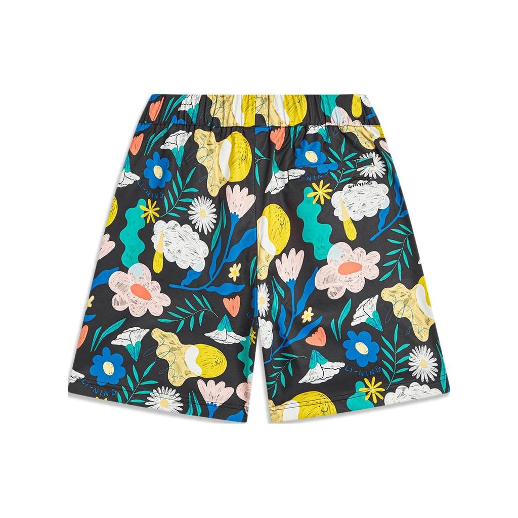 Li Ning Sports Trend Series All Over Print Mid Rise Loose Fit Sports Shorts Unisex Shorts Black AKST443-1