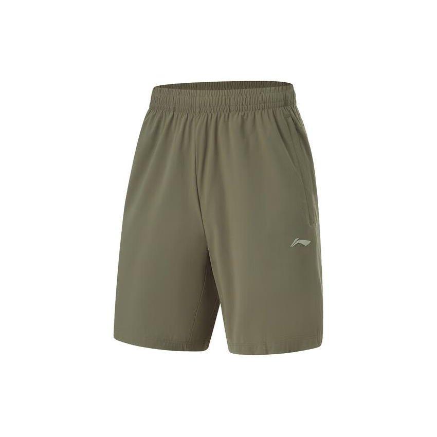 Li Ning Fitness Series однотонные эластичные быстросохнущие трикотажные спортивные шорты мужские шорты цвета милитари-зеленый AKYU353-8