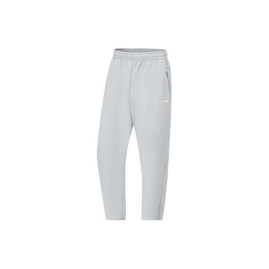 Мужские спортивные брюки Li Ning Fitness Series, однотонные, со средней талией, зауженные, трикотажные, серо-туманного цвета AKLU067-6