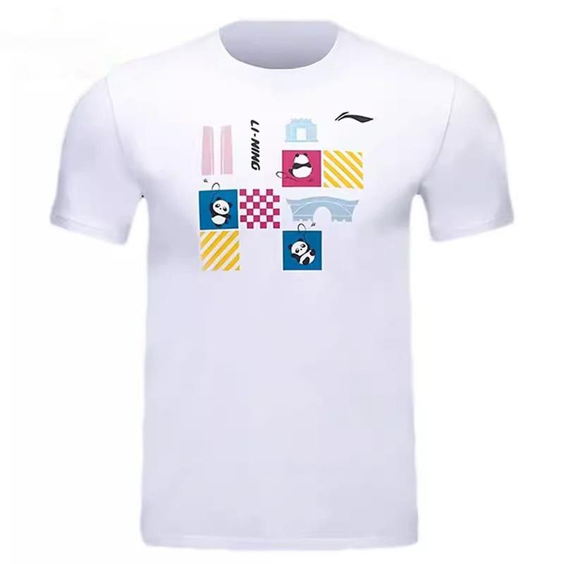 Футболка для бадминтона Li Ning с рисунком аниме и мультяшным принтом, с круглым вырезом, удобная, универсальная, дышащая, с коротким рукавом, унисекс, топы стандартного белого цвета AHSUA47-2