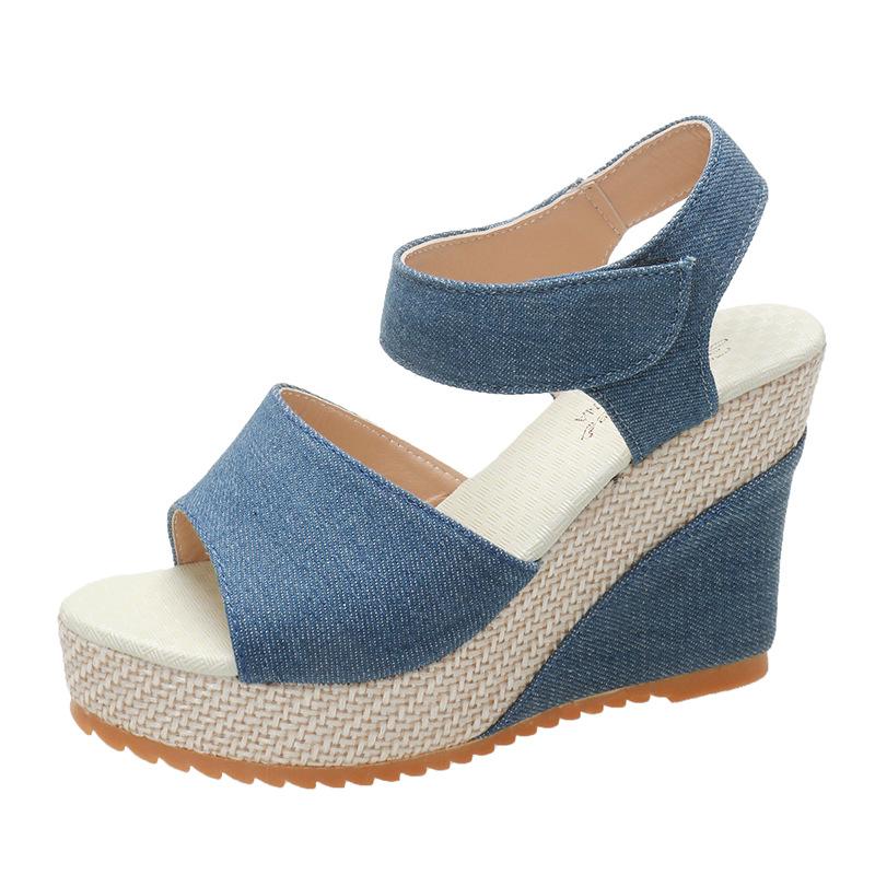 Летняя мода деним новые туфли-маффины женские повседневные сандалии волшебная платформа танкетка женские сандалии
