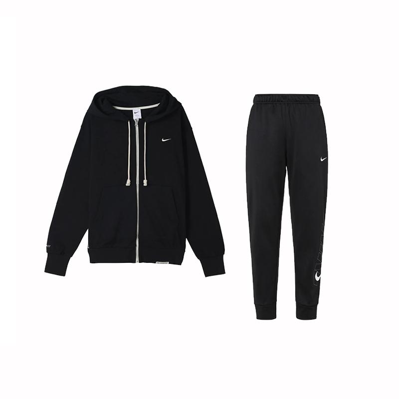 Nike Однотонная куртка на молнии с капюшоном и трикотажные штаны для бега с манжетами, повседневный спортивный комплект для мужчин, черный цвет DQ5817-010+FB6893-010_