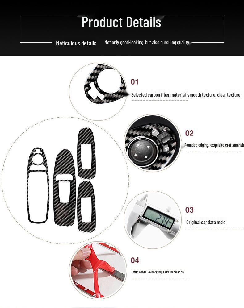 Подходит для Infiniti Q50/Q60/QX60: Наклейка переключателя стеклоподъемника на внутреннюю дверную панель из углеродного волокна