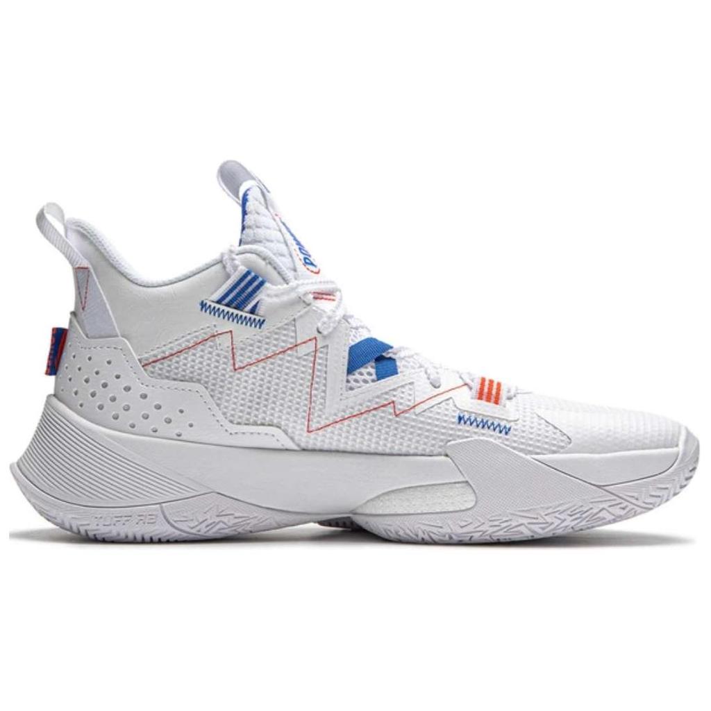 Li-Ning Удобные модные нескользящие износостойкие баскетбольные кроссовки средней высоты мужские кроссовки белые синие ABPU055-1