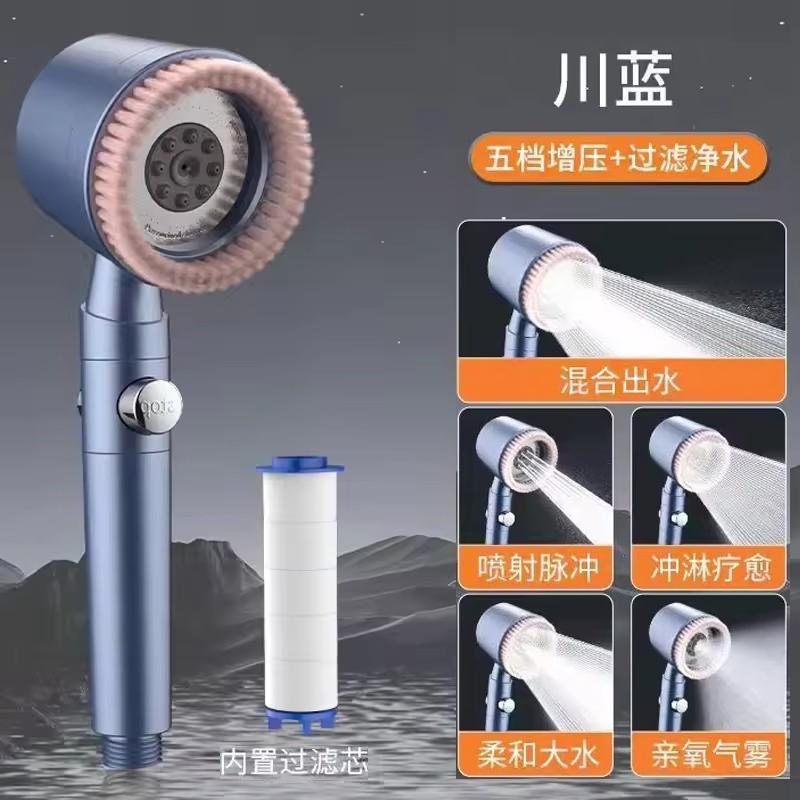 9 IN 1 Large Flow Turbocharged Shower Head 5 Modes High Pressure Water Saving Massage Portable One-key Stop Filter Shower Set