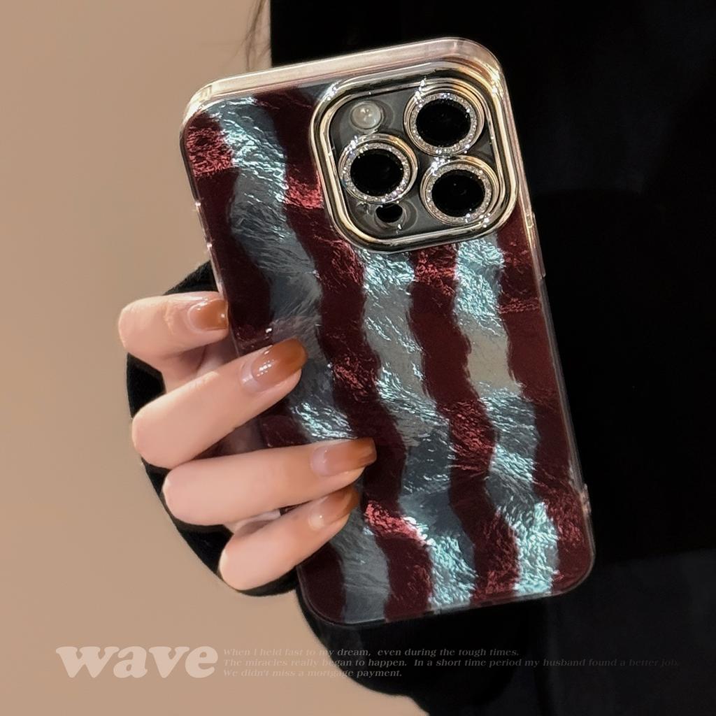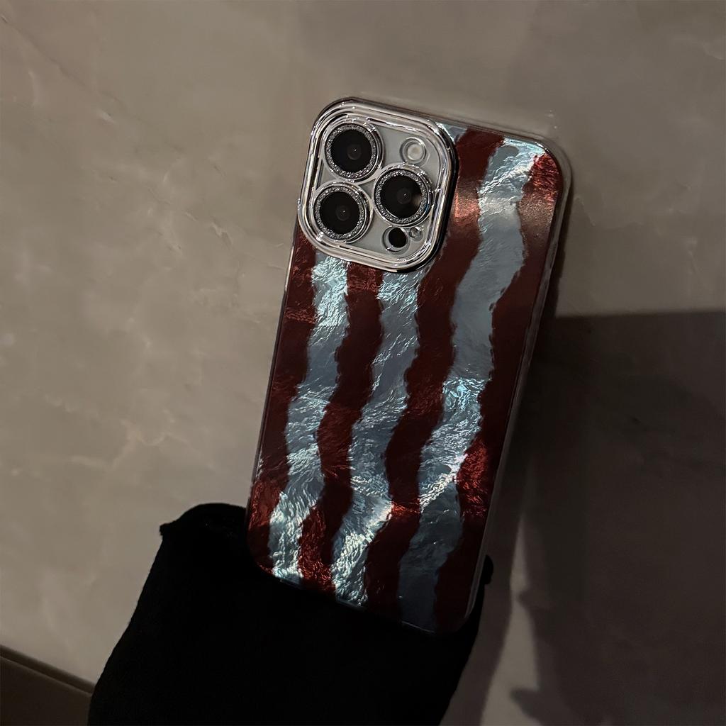 Контрастный чехол для мобильного телефона в полоску с волнистым узором, подходит для 16 Apple 17 Promax Защитная пленка для объектива Iphone14 Ретро 12 Премиум