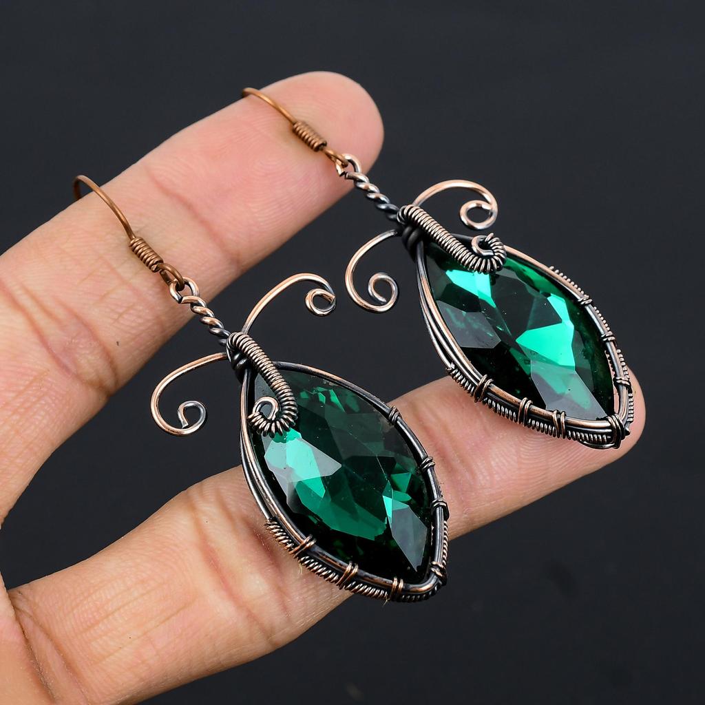 Зеленый мистический топаз 999 Медная проволока обмотанные серьги, Серьги с драгоценными камнями ручной работы, На День памяти