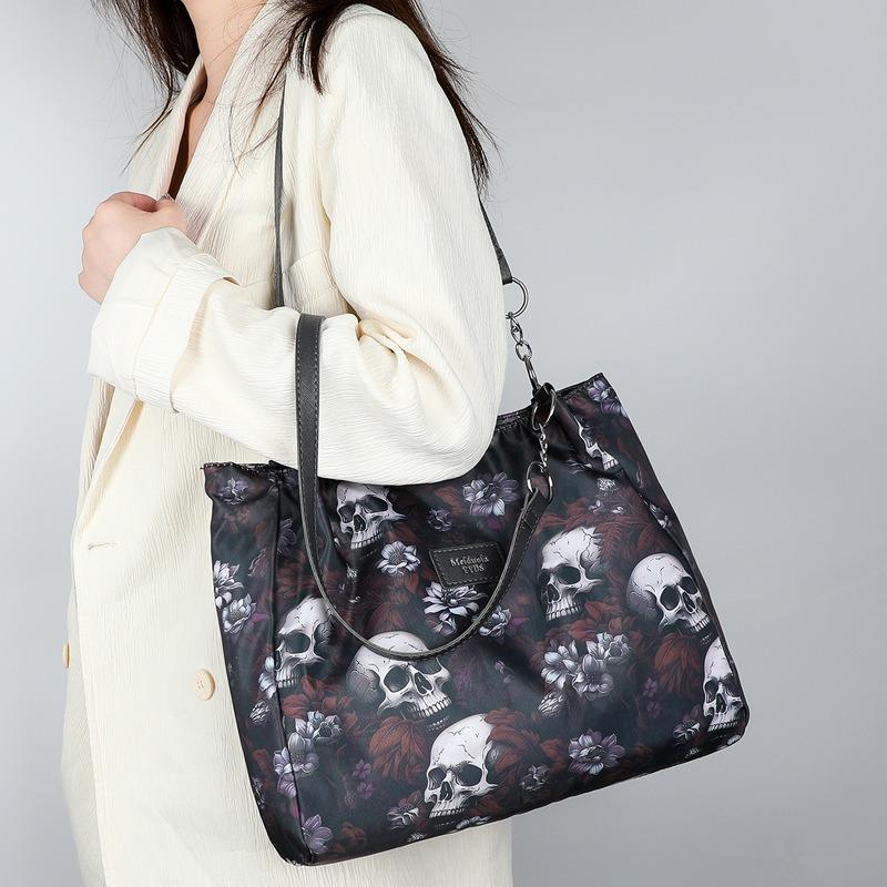 Вместительная сумка-тоут с готическим принтом черепа, универсальная, простая, модная, на плечо