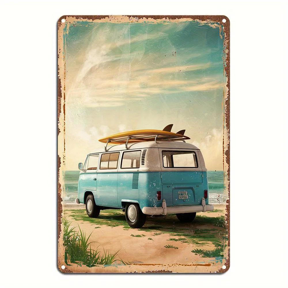 Винтажный Металлический Настенный Декор Фургон для Серфинга - Прибрежный Пляжный Декор с Бирюзовым Фургоном и Серфбордами - Водонепроницаемый Ретро Гараж, для Мужчины — купить товар онлайн с бесплатной доставкой по всему миру!