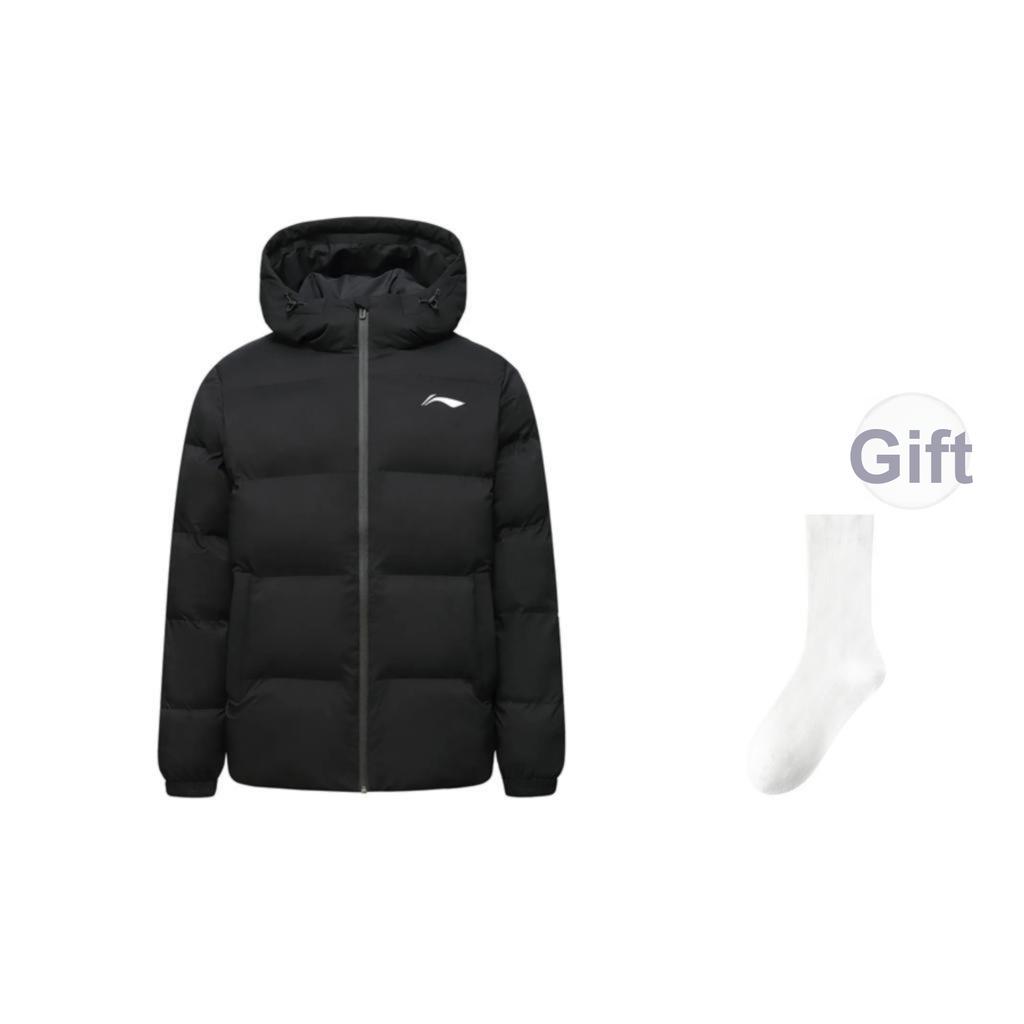 Li Ning теплая удобная универсальная хлопковая куртка с капюшоном и длинными рукавами, куртка унисекс, черная AJMU291-1