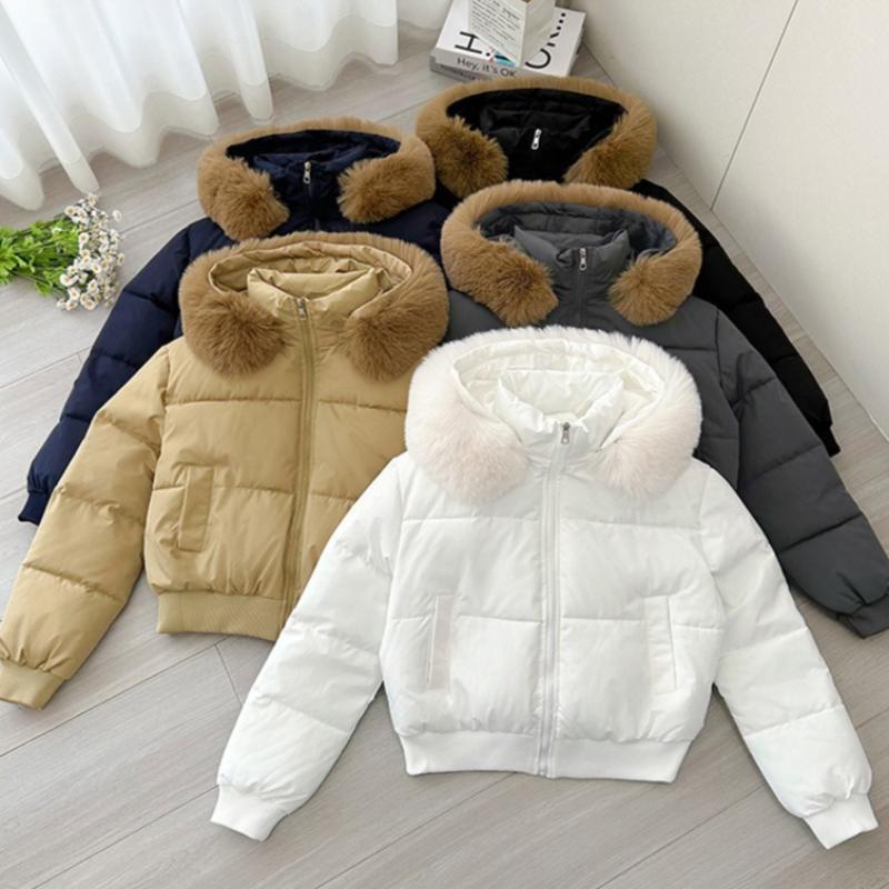 Женская мода: Американский стиль, с высокой талией, укороченная куртка оверсайз с капюшоном и отделкой из искусственного меха для осени и зимы