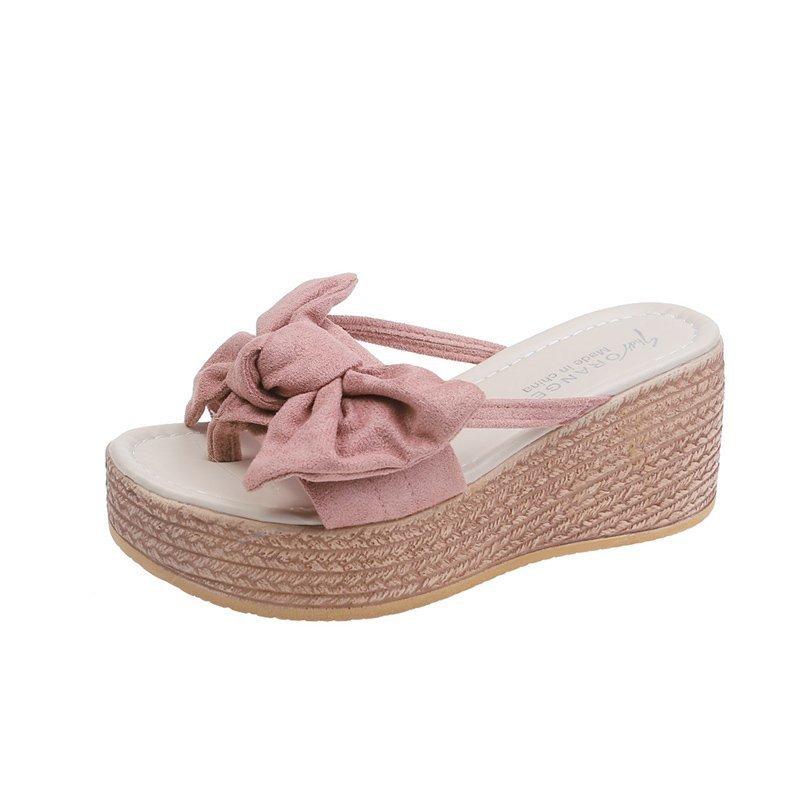 Летние новые тапочки на толстой подошве и танкетке с бантом, крутые тапочки с бантом в виде одного символа