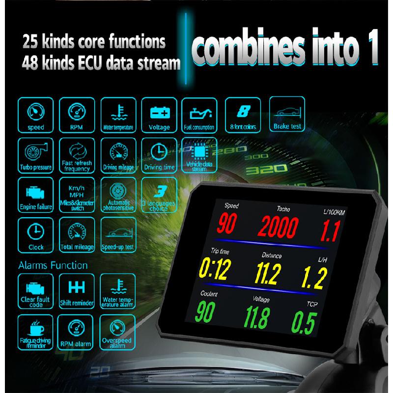 Бортовой компьютер Hud Датчик OBD2 Измеритель скорости Напряжения Расхода топлива Температуры воды Универсальный Автомобильный
