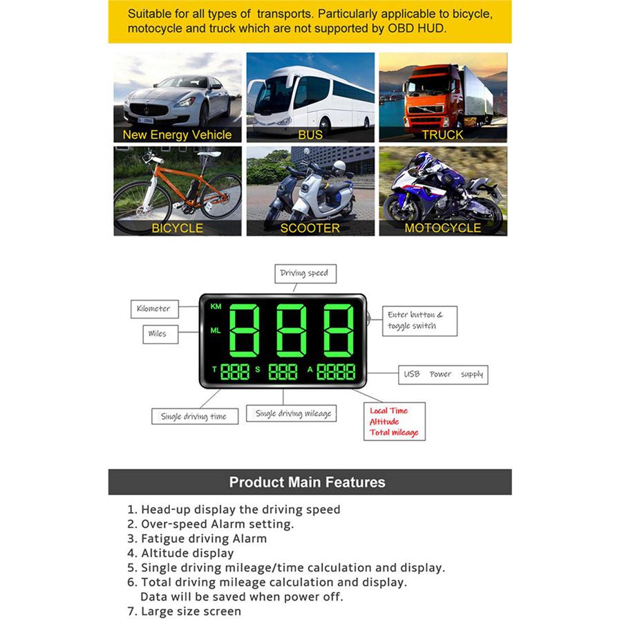 4) Совместимость со всеми автомобилями и грузовиками, мотоциклами и велосипедами. Используйте расчет с помощью сигнала GPS.
