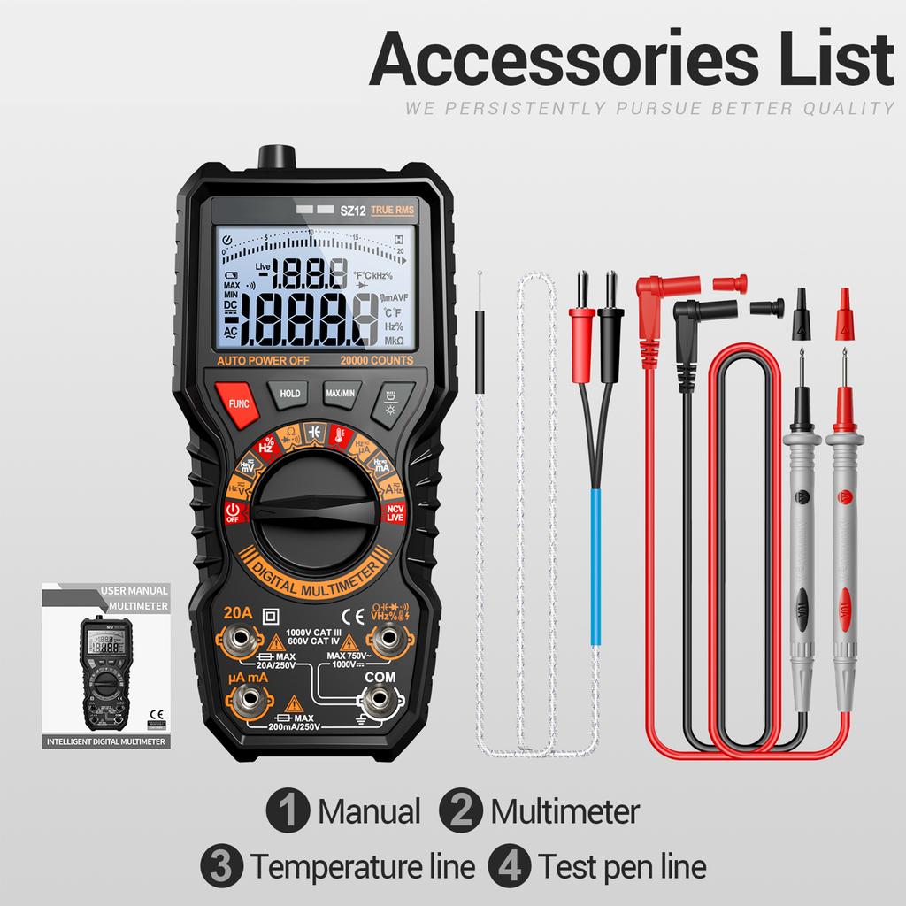 Цифровой мультиметр 20000 отсчетов, True RMS, автоматический выбор диапазона, тестер напряжения NCV, измеряет напряжение и ток AC/DC, сопротивление,