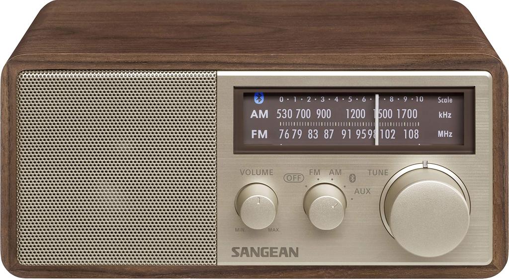 SANGEAN WR-302 Bluetooth-динамик с FM/AM-радио, грецкий орех [Совместим с Bluetooth]