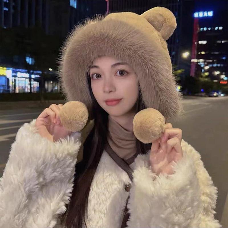 Женская осенне-зимняя толстая плюшевая шапка с ушками плюшевого мишки, модная универсальная плюшевая шапка, большой обхват головы, защита ушей, теплая шапка