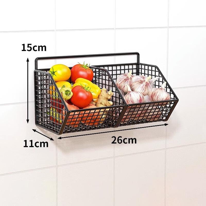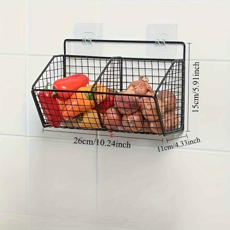 Настенная металлическая кухонная полка для хранения Прочная корзина-органайзер для овощей, чеснока и лука - Компактный дизайн Сетчатый держатель