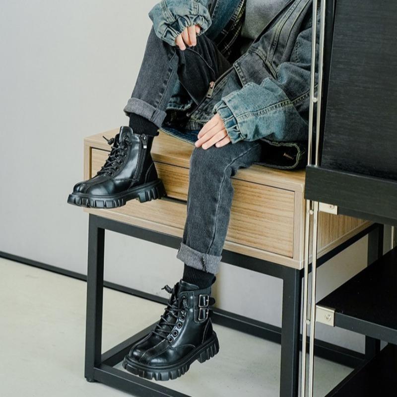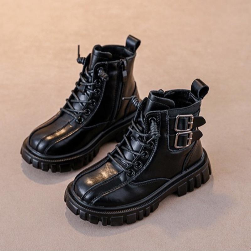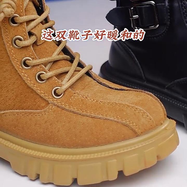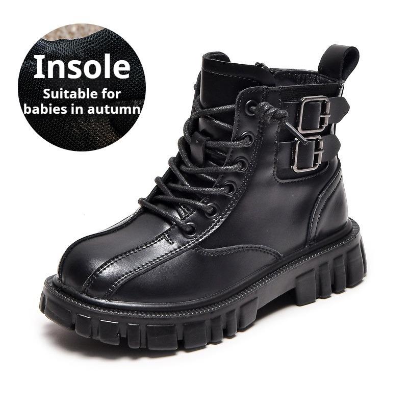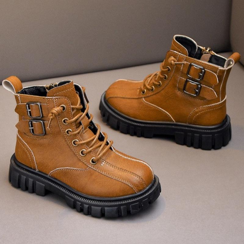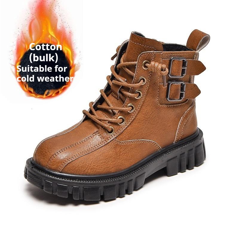 Boys' Fleece Cotton Boots Children's Non-slip British Style Cowhide Ankle Boots