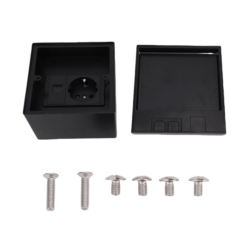 Встраиваемая плоская розетка с 2-контактным разъемом и портом для сетевого кабеля, комплект коробок-рецептаторов для встраивания в пол, черный