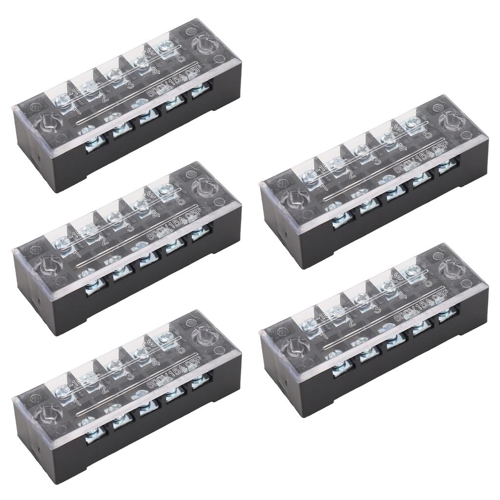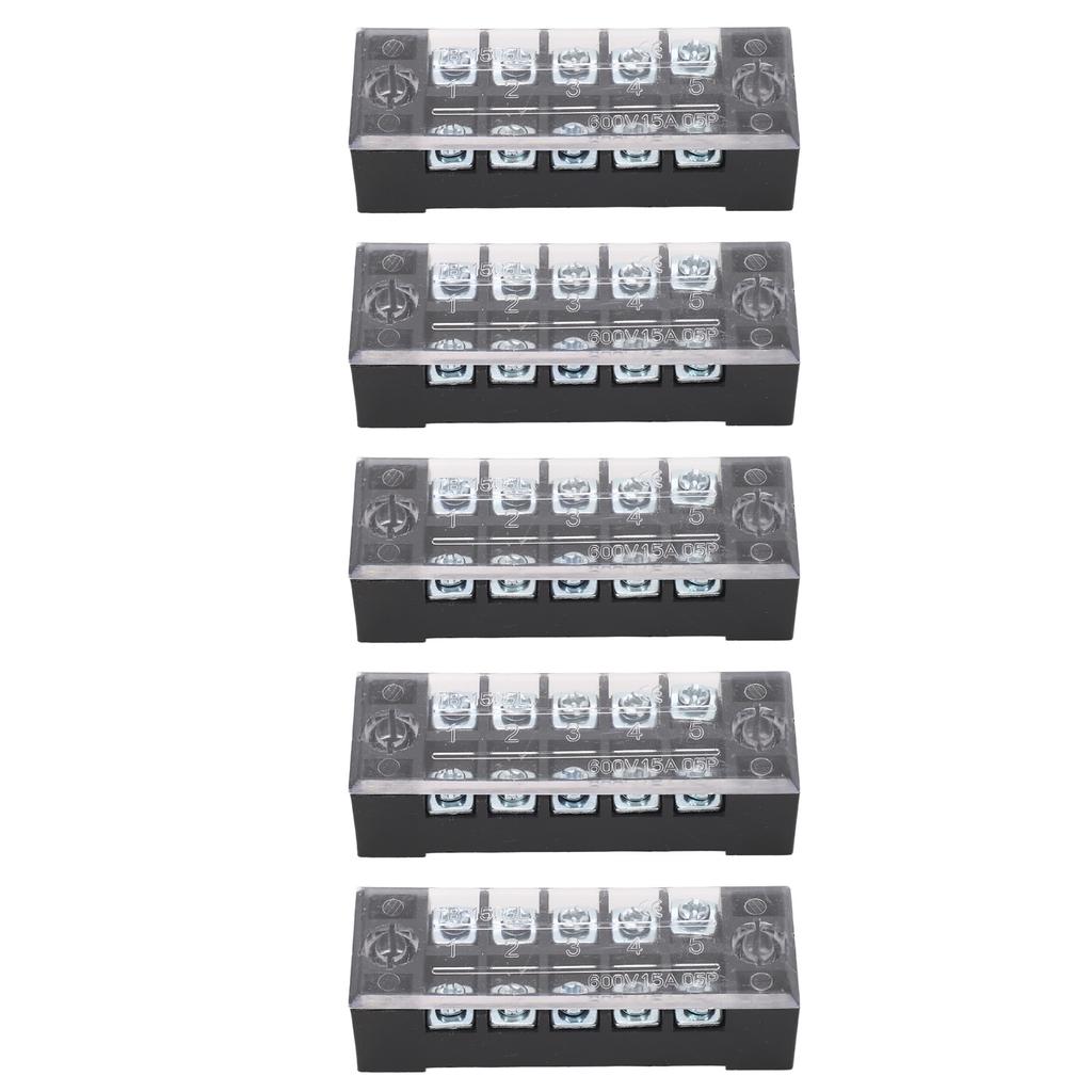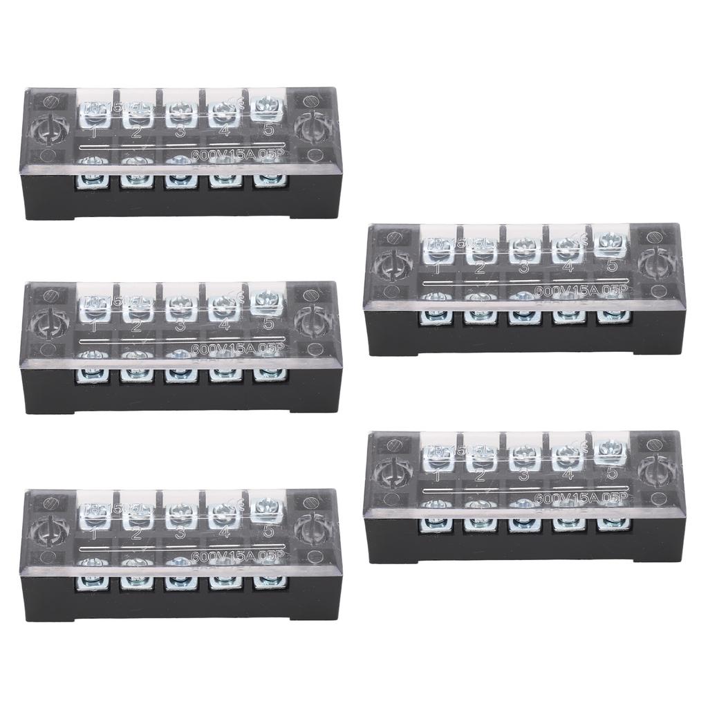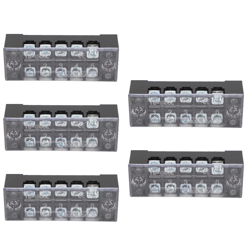 5 Sets Power Distribution Block M3 Screw Terminal 5 Terminals Bus Bar 600V 15A for Automobile Boat