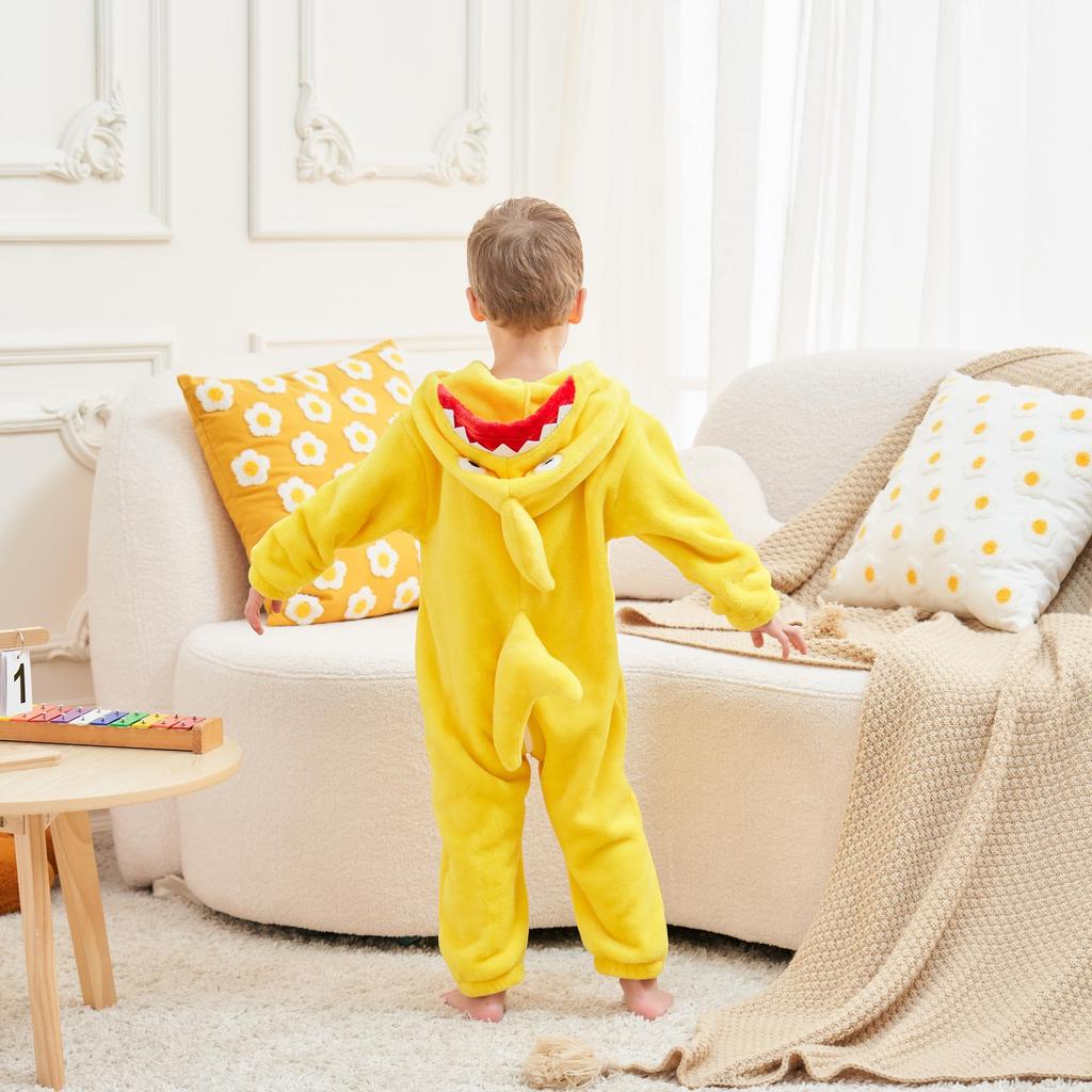 LOLANTA Детский кигуруми акула, детский комбинезон, костюм на Хэллоуин, костюм на Рождество, желтый, размеры 90-105