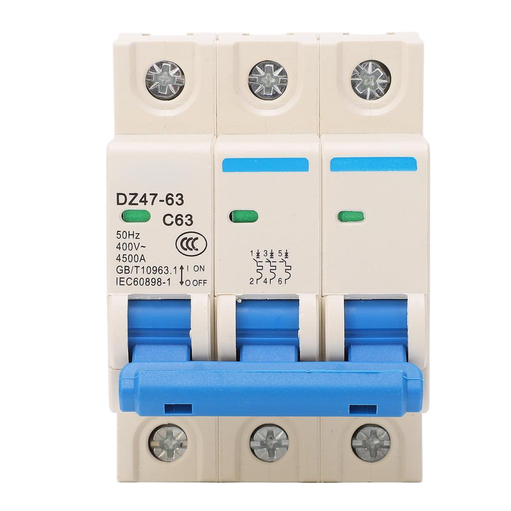 3P миниатюрный автоматический выключатель с креплением на DIN-рейку, защита от перегрузки, переменный ток 400 В, 50 Гц, 63 А