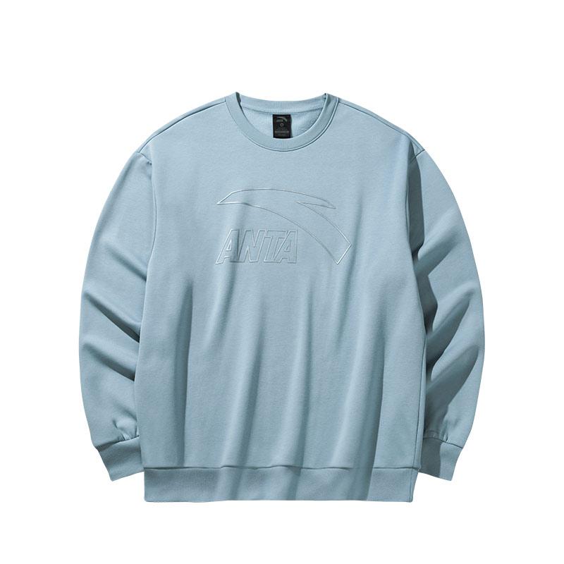 Anta Свитер серии Lifestyle с круглым вырезом и буквенным логотипом, дышащий спортивный свитшот с длинным рукавом, мужской свитшот светло-голубого цвета 952448709-1